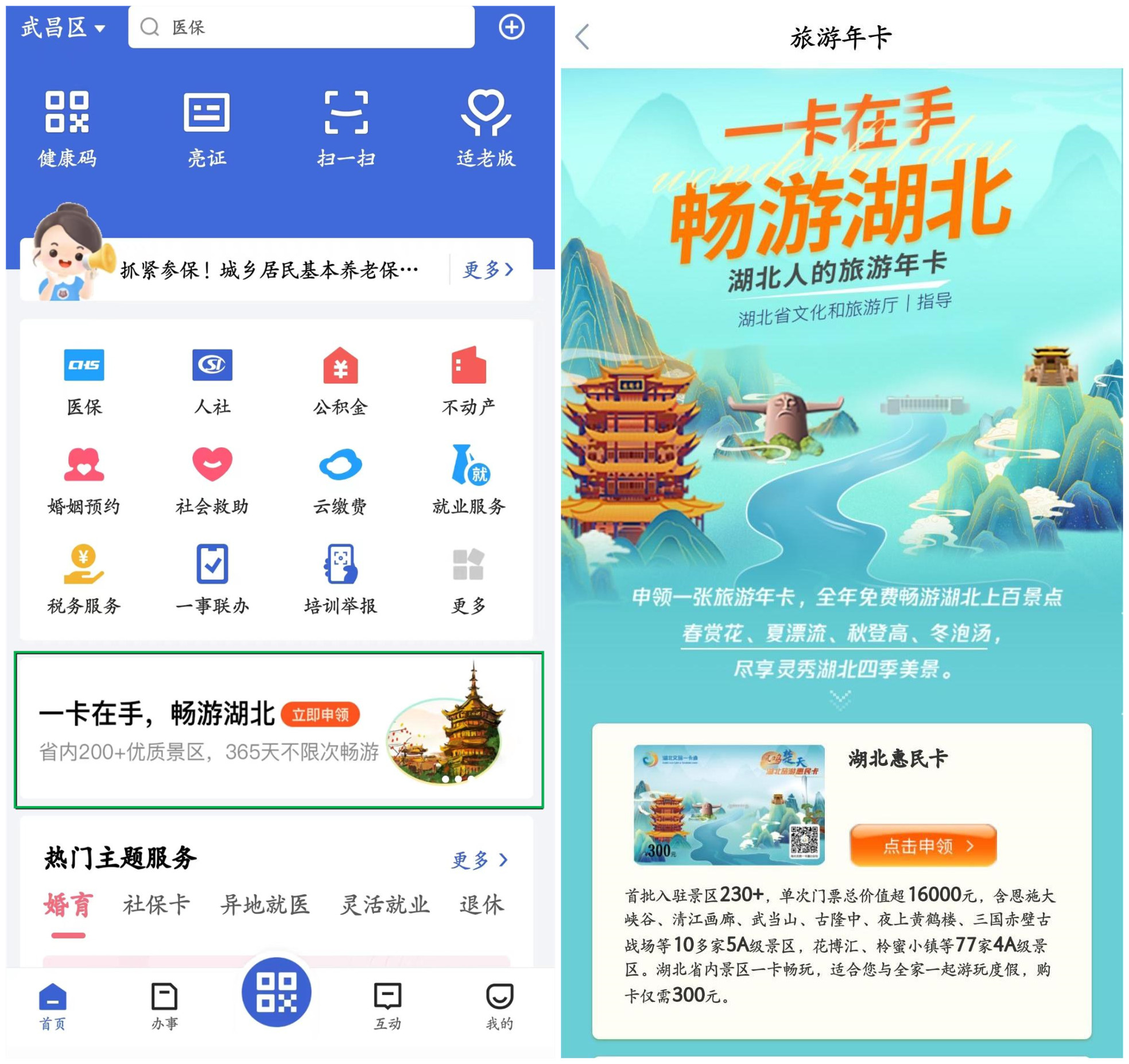 輕點手機打開“鄂匯辦”APP,即可在醒目banner圖上便捷購買湖北旅游惠民卡……日前,湖北旅游惠民卡正式上線“鄂匯辦”,這是湖北文旅一卡通科技有限公司與楚天云公司合作的新舉措。