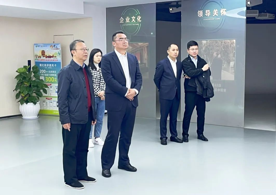 吳宏建一行還參觀(guān)考察了湖北文旅集團(tuán)數(shù)字展廳以及“一部手機(jī)游湖北”全域智慧文旅綜合服務(wù)平臺(tái)。數(shù)旅集團(tuán)副總經(jīng)理樊后濤陪同考察。