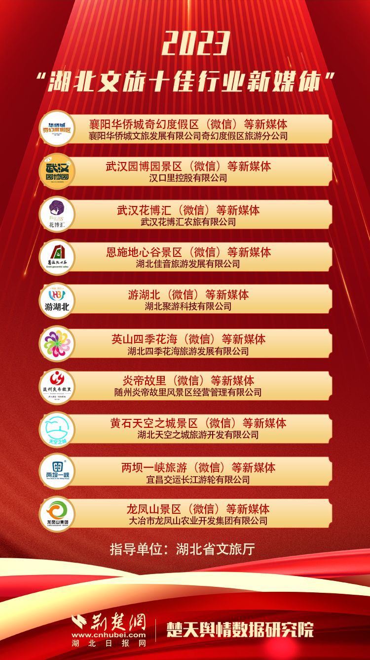 此次獲評(píng)2023“湖北文旅十佳行業(yè)新媒體”還有省內(nèi)襄陽華僑城奇幻度假區(qū)、漢口里、武漢花博匯、天空之城等9家單位。