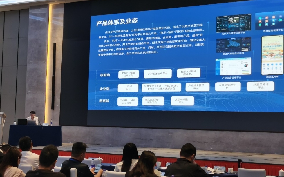 會(huì)議期間,數(shù)字文旅集團(tuán)大數(shù)據(jù)中心負(fù)責(zé)人閔天亮專題介紹了“一部手機(jī)游湖北”全域旅游智慧服務(wù)平臺(tái),以及依托此平臺(tái)的“游湖北”APP和小程序、湖北文旅分時(shí)預(yù)約平臺(tái)、湖北文旅產(chǎn)業(yè)監(jiān)管決策平臺(tái)、湖北文旅大數(shù)據(jù)查詢平臺(tái)、旅游年卡平臺(tái)等面向政府端、企業(yè)端、游客端的龍頭產(chǎn)品。