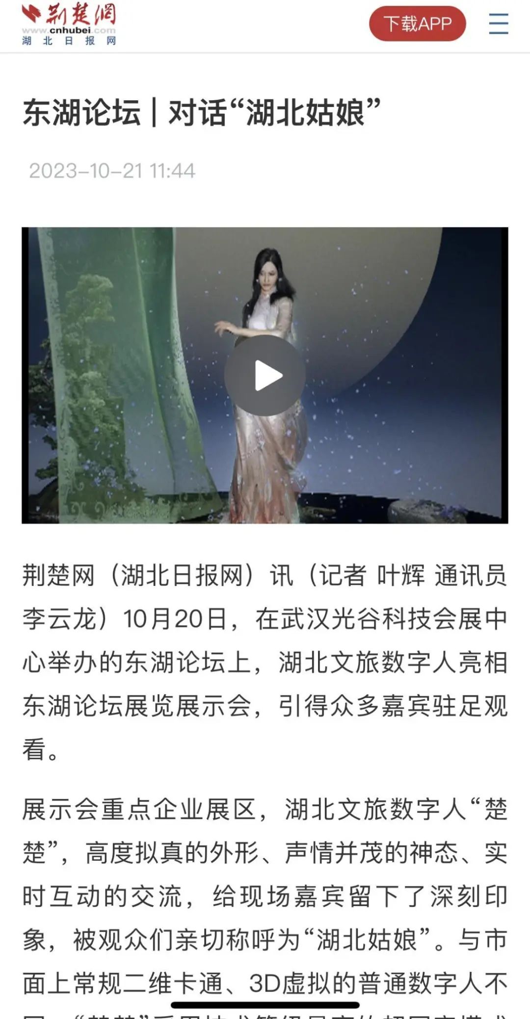 10月20日至22日,“東湖論壇”在武漢光谷國際會(huì)展中心隆重舉行,湖北文旅集團(tuán)受邀參加“2023東湖論壇·重點(diǎn)企業(yè)展區(qū)展示會(huì)”,湖北文旅集團(tuán)旗下湖北數(shù)字文旅集團(tuán)“楚楚”數(shù)字人首次亮相展會(huì)。