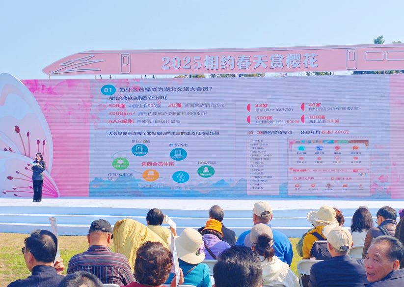 活動期間,湖北數(shù)字文旅集團(tuán)亮相宣傳推介會,并專題推介了“湖北文旅大會員”平臺櫻花季限時驚喜福利。據(jù)介紹,櫻花季活動期間,平臺會員消費(fèi)可享3倍積分,積分可兌換櫻花限定好禮;現(xiàn)場掃碼加入會員即可參與抽獎,豐厚獎品琳瑯滿目,洪山賓館下午茶體驗券、酒店券、門票券、度假線路券等一應(yīng)俱全。此外,會員完成每日打卡可加速提升會員等級,金卡、鉆石卡的尊享權(quán)益觸手可及。活動現(xiàn)場,觀眾互動積極踴躍,氣氛熱烈非凡,大家紛紛表達(dá)出對平臺各項福利的濃厚興趣與高漲熱情,熱度持續(xù)攀升。