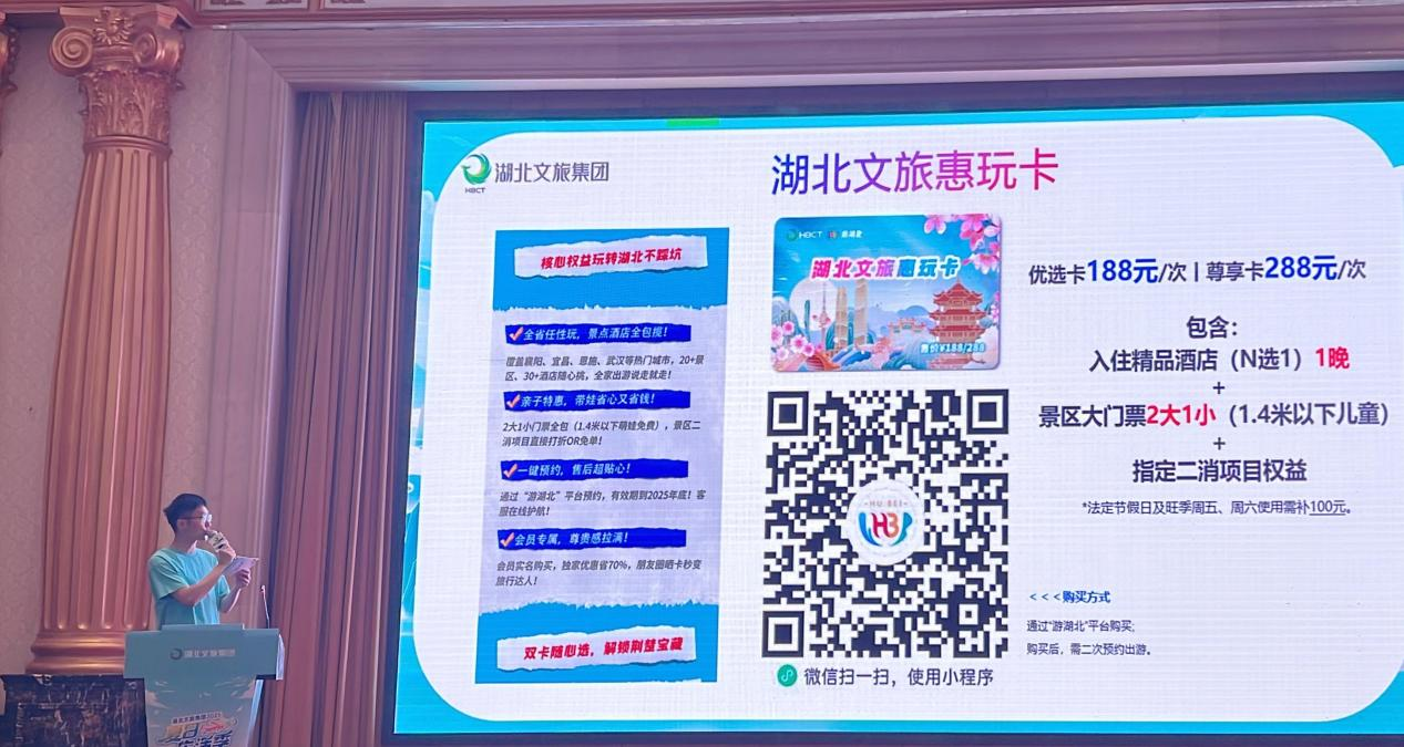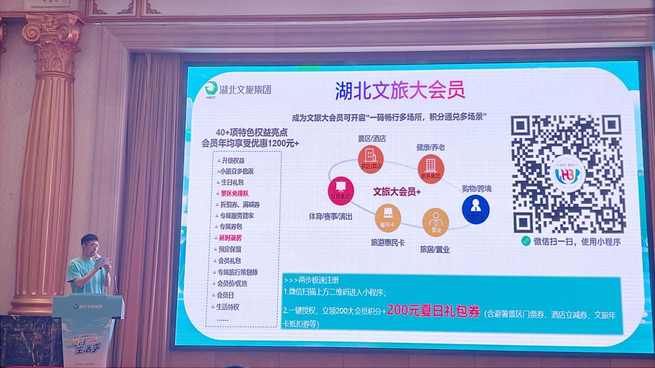 啟動儀式上,湖北文旅惠玩卡及“湖北文旅大會員”夏日優(yōu)惠政策成為全場焦點。湖北文旅惠玩卡整合了湖北省內(nèi)豐富的文旅資源,僅需188元/次,即可享受熱門景區(qū)大門票(2大1小,兒童限1.4米以下)、所在景區(qū)精品酒店入住一晚,以及指定二次消費(fèi)項目等多重權(quán)益,為游客提供超值的出游選擇。注冊成為“湖北文旅大會員”,年均可享價值1200元以上的優(yōu)惠權(quán)益及景區(qū)免排隊、延遲退房等40多項專屬權(quán)益?;顒蝇F(xiàn)場推出“注冊立領(lǐng)200積分+200元夏日禮包券”限時福利,引發(fā)觀眾掃碼注冊熱潮。