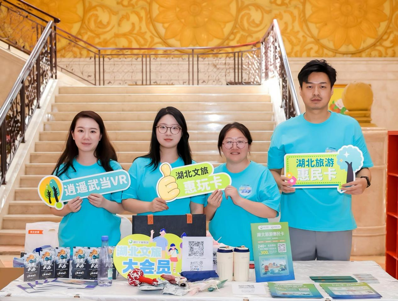 數(shù)旅集團(tuán)在現(xiàn)場擺展,工作人員主動介紹“湖北文旅大會員”權(quán)益、湖北文旅惠玩卡產(chǎn)品、湖北旅游惠民卡產(chǎn)品和《逍遙武當(dāng)》VR大空間沉浸式體驗項目,吸引了大量游客駐足。