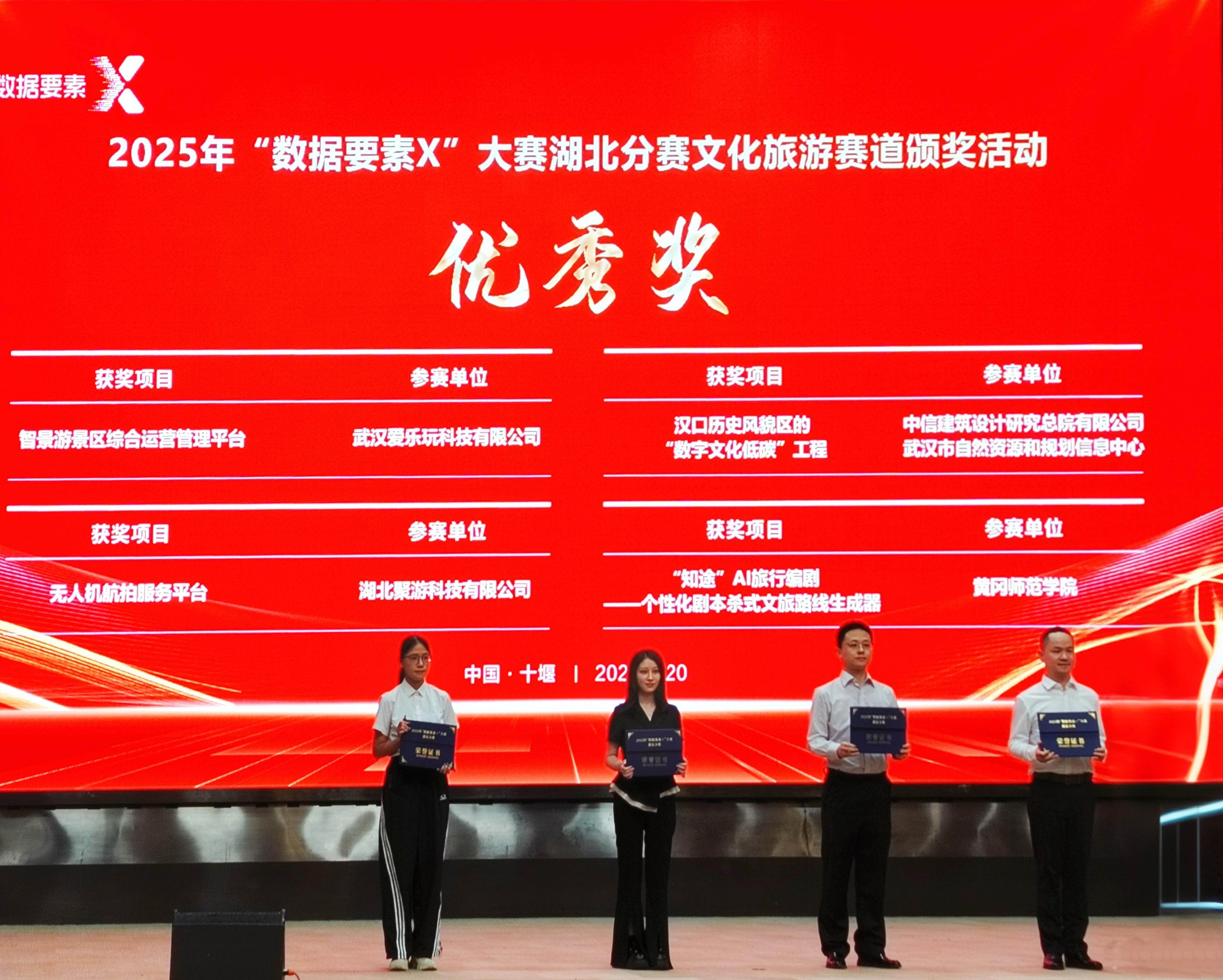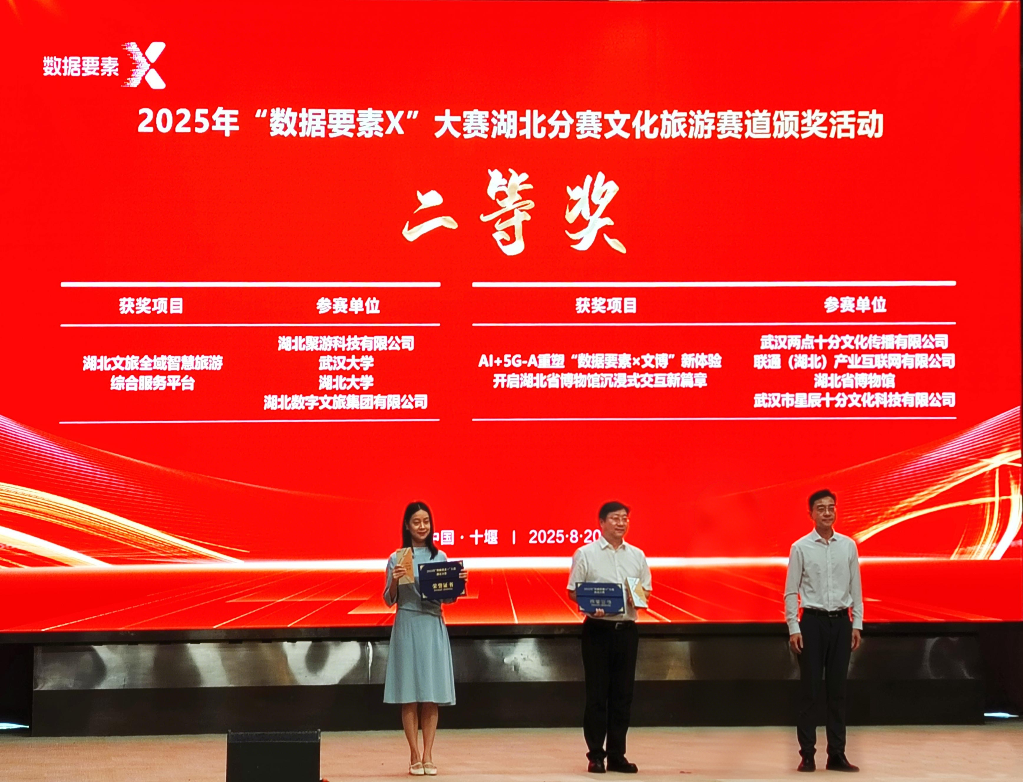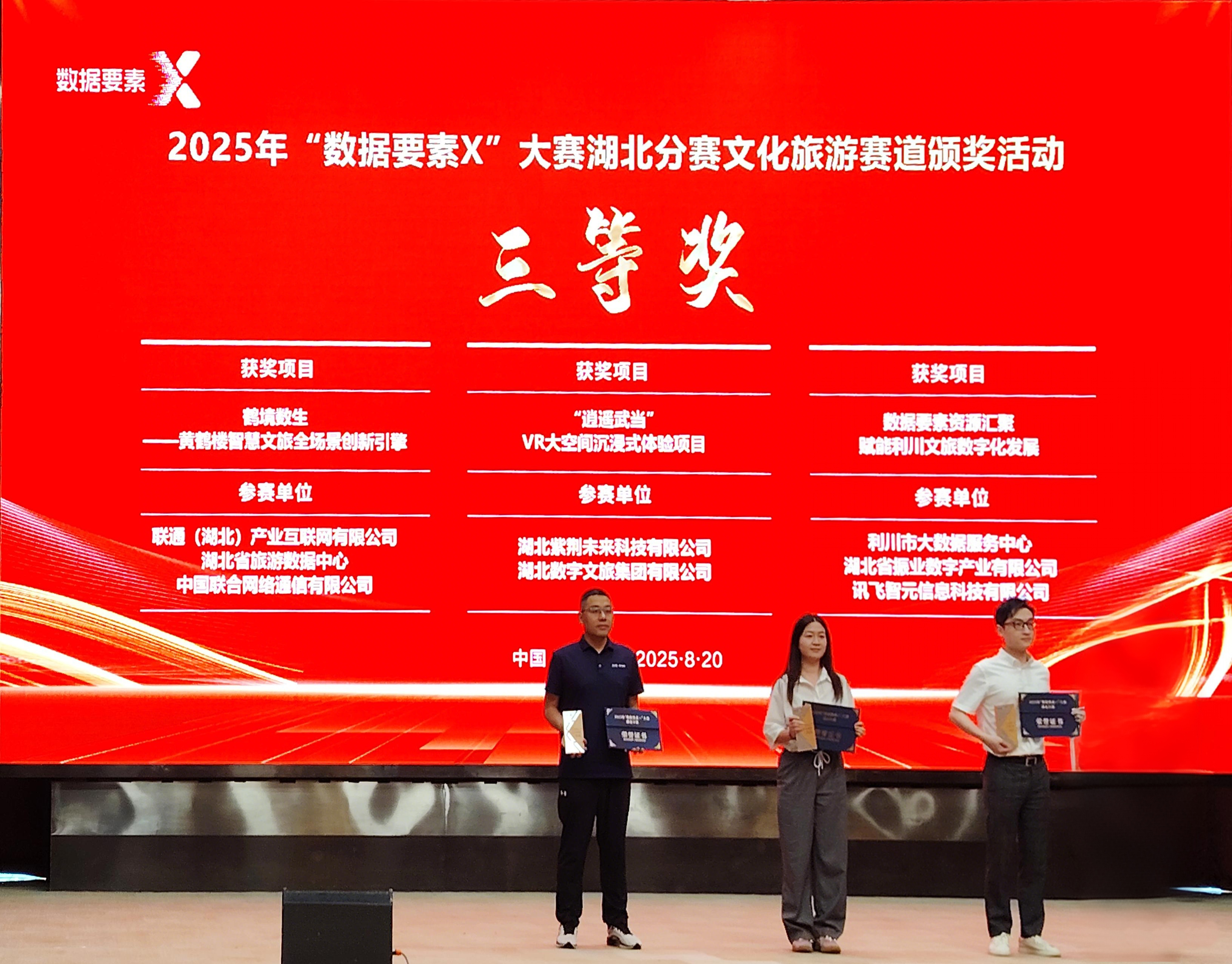 8月20日,由湖北省數(shù)據(jù)局、湖北省文化和旅游廳、十堰市人民政府主辦的2025年“數(shù)據(jù)要素×”大賽湖北分賽文化旅游賽道決賽活動在十堰成功舉行。數(shù)旅集團參賽項目均獲得獎項,湖北文旅全域智慧旅游綜合服務(wù)平臺獲二等獎(賽道第2名)、“逍遙武當(dāng)”VR大空間沉浸式體驗項目獲三等獎(賽道第4名)、無人機航拍服務(wù)平臺和智景游景區(qū)綜合運營管理平臺獲優(yōu)秀獎。在參賽數(shù)量、入圍率及獎項層級上均實現(xiàn)顯著突破,充分彰顯了公司在數(shù)據(jù)要素領(lǐng)域的技術(shù)積累與創(chuàng)新實力。