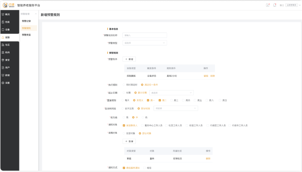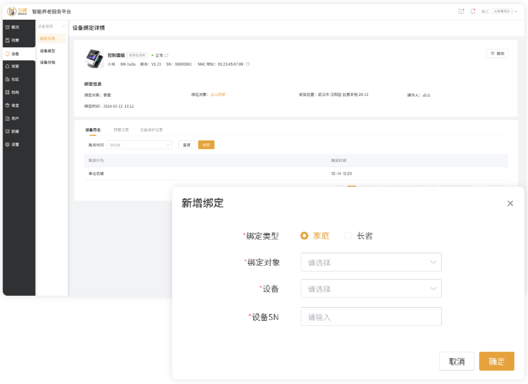 可實(shí)時(shí)采集設(shè)備連接狀態(tài)與運(yùn)行狀態(tài)數(shù)據(jù)。無論是設(shè)備的在線/離線情況,還是運(yùn)行中的各項(xiàng)參數(shù)指標(biāo),都能精準(zhǔn)掌握。以便及時(shí)發(fā)現(xiàn)設(shè)備異常,快速定位問題,確保智能設(shè)備始終處于良好工作狀態(tài),為養(yǎng)老服務(wù)提供可靠支撐。
