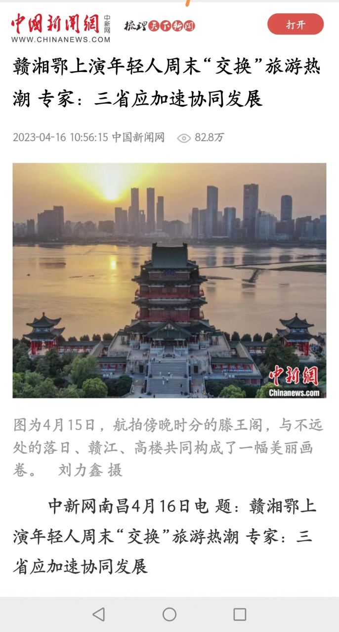 日前,中新社聚焦長江中游三省旅游協(xié)同高質(zhì)量發(fā)展,以《贛湘鄂上演年輕人周末“交換”旅游熱潮 專家:三省應(yīng)加速協(xié)同發(fā)展》為原標(biāo)題進行了專題報道,對于長江中游三省旅游一卡通助力贛鄂湘三省旅游復(fù)蘇振興現(xiàn)象給予了關(guān)注。現(xiàn)予全文轉(zhuǎn)載,原文如下: