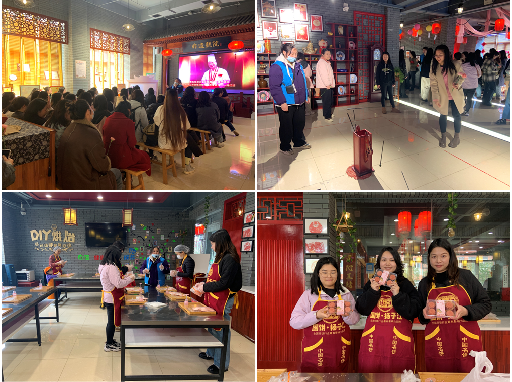 活動期間,在專業(yè)講解員的帶領(lǐng)下,參觀揚子江非遺文化館,了解揚子江傳統(tǒng)糕點制作技藝的傳承故事;隨后按照分組,在專業(yè)老師指導(dǎo)下,女職工們現(xiàn)場體驗中華優(yōu)秀傳統(tǒng)文化,有的制作掐絲琺瑯書簽,有的制作糕點,有的體驗漢服,不同種類的沉浸式體驗讓女職工們“零距離”感受非遺文化的獨特魅力。