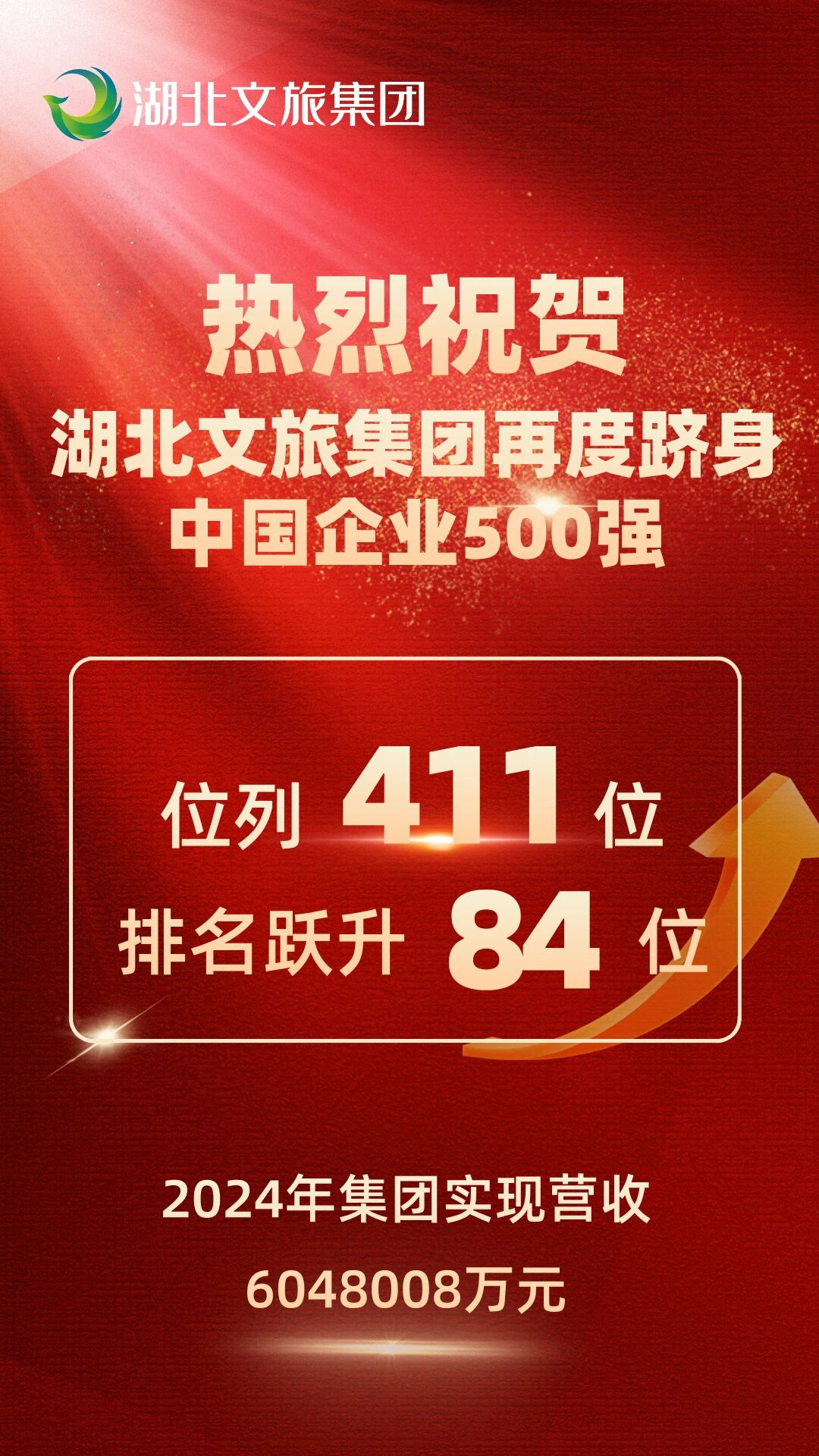 湖北文旅集團再入圍中國企業(yè)500強,排名躍升84個位次。9月15日,中國企業(yè)聯(lián)合會、中國企業(yè)家協(xié)會連續(xù)第24次向社會發(fā)布了“中國企業(yè)500強” (以下簡稱“企業(yè)500強”)榜單。湖北文旅集團連續(xù)第二年入圍,排名升至411位,比去年躍升了84個位次。近年來,集團年營收、經營性利潤均保持20%以上高位增長,特別是2024年集團投資、營收、接待游客量三個核心指標增長100%以上,當年接待游客量突破3100萬人次,總資產達1000億元。集團連續(xù)七年獲評全國旅游集團20強,連續(xù)兩年躋身“中國企業(yè)500強”。